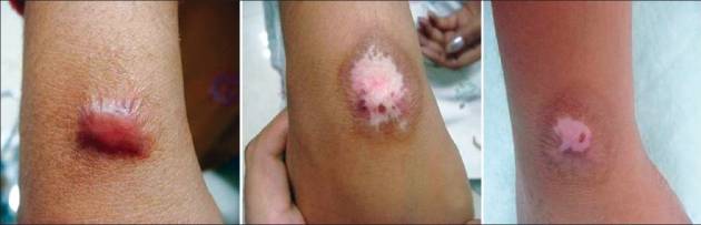 冷凍治療方法對於蟹足腫疤痕有正面的效果。